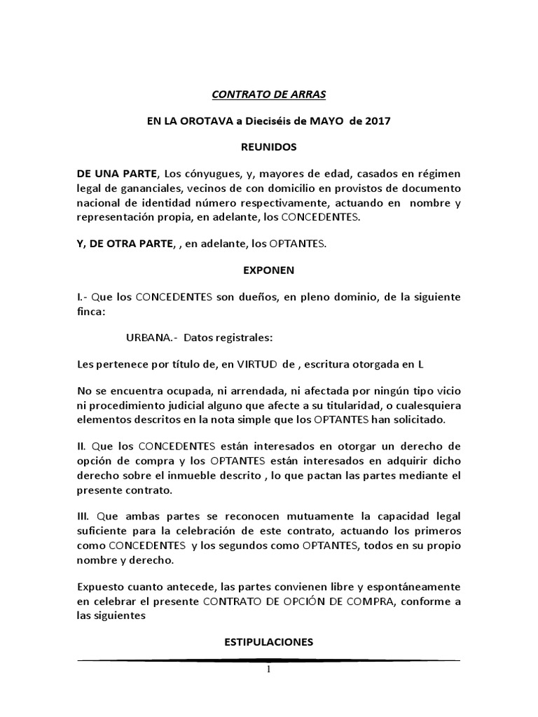 La eleccin del notario autorizante de. Un contrato de arras con intermediacin inmobiliaria en Mlaga es un documento legal privado donde las partes involucradas pactan la reserva de la compra-venta de un inmuebleEl potencial comprador deja una cantidad de anticipo como seal de prueba. Tamao 4 a 6 pginas.