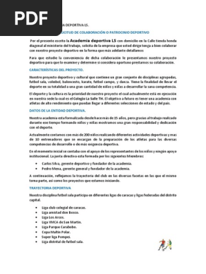 Formatos Word y PDF. Descargue como DOCX PDF TXT o lea en lnea desde Scribd. Estimados representantes de _____ nombre de la empresa Presente-Carta de solicitud de patrocinio.