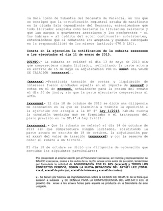 El rea de IN DIEM Abogados experto en Ejecucin Hipotecaria cuenta con una dilatada experiencia y alto grado de conocimiento en el Sector Bancario y Financiero con un equipo que cuenta con innumerables resoluciones favorables en esta jurisdiccin. Juzgado de Primera Instancia __ de _____ Proc. Es parte de una EJECUCION HIPOTECARIA al.