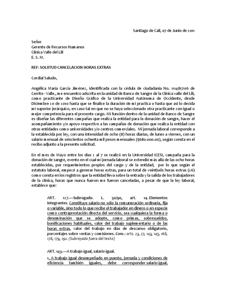 Redaccion De Una Carta De Solicitud De Pago De Horas Extraordinarias Formato De Ejemplo