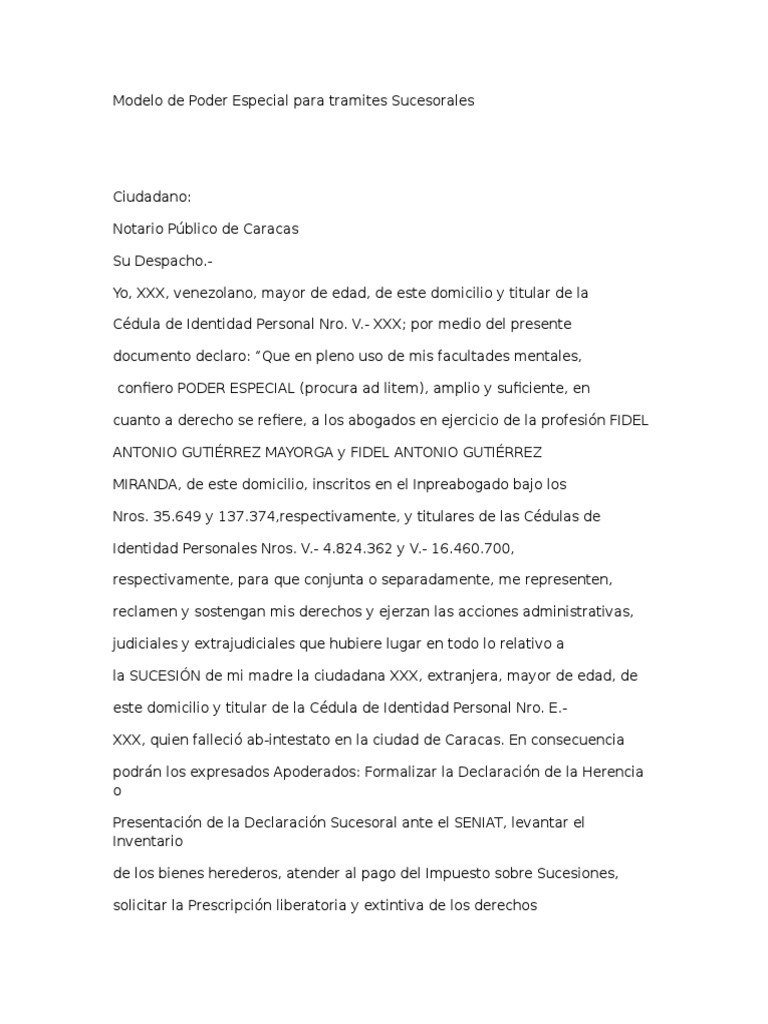 Modelo De Poder Especial Para Tramites Sucesorales Pdf Justicia Crimen Y Violencia