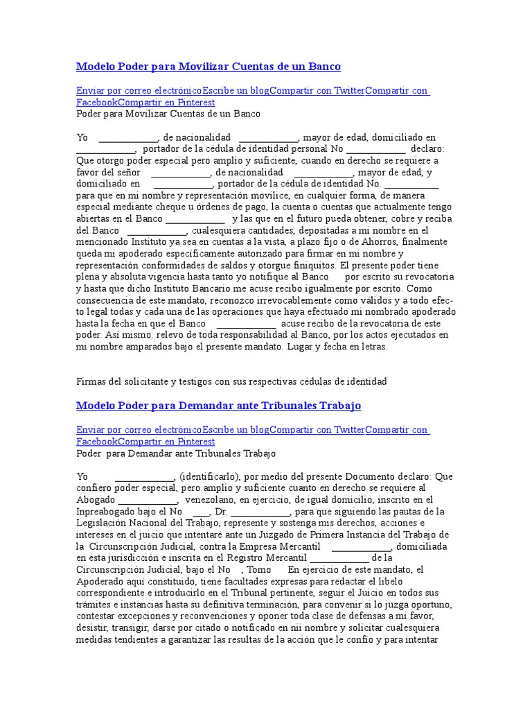 Modelo Poder Para Movilizar Cuentas De Un Banco Bancos Divorcio